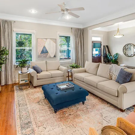 A fully equipped kitchen has conveniences such as an oven and a dishwasher for guests to cook. Happy Times On Park Main + Carriage By Lucky Savannah villa is 350 m from café The Foundery Coffee Pub. Savannah/Hilton Head International airport is situated 20 km away, while SCAD Anderson Hall Platform bus station is only a few steps from Happy Times On Park Main + Carriage By Lucky Savannah villa.