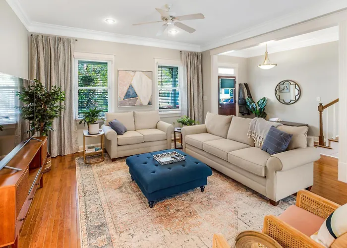 Happy Times On Park Main + Carriage By Lucky Savannah villa offers proximity to such city sites as Second Evergreen Baptist Church, located just a 6-minute walk away.